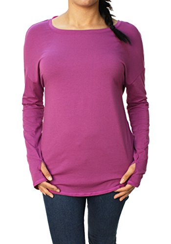 Slim fitted sleeves and chest flow in to a wider, more generous body for superior movement. Ultra-soft modal knit fabric delivers incredible next-to-skin comfort. Lightweight, stretch construction improves mobility and maintains shape. Wide, boat neck design offers an elegant, yet athletic finish. Droptail and thumbholes allow for constant coverage while moving. Unique dropped shoulder seams eliminate uncomfortable rubbing and chafing. Cotton/Modal/Elastane. Imported.Feature