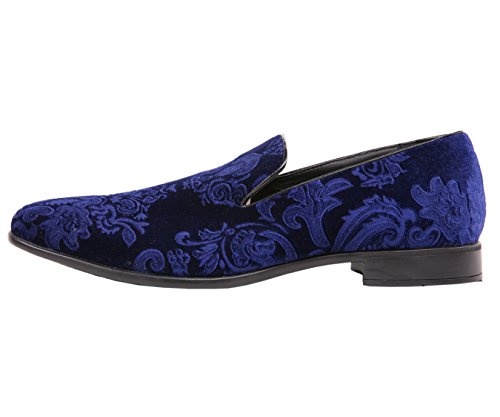 Binding : Apparel Product Description A modern take on a classic smoking slipper, these plush velvet dress shoes are sure to be noticed. Soft manmade velvet upper is adorned with a large paisley print, taking these timeless slip-on shoes from basic to bold. Pair with a black-and-pop color ensemble to create a complete, statement-making look. This style is ideal for special events, such as New Year's Eve, holiday parties, date night, clubbing, or any other festive occasion where making an impact with your outfit is key. These loafers are as comfortable as they are stylish-they're perfect to wear again and again.These shoes run true to size, so select your normal size when ordering. Their comfortable soft construction makes them easy to break in and wear right out of the box. This sought-after style is available in Black, Navy, and Purple so you can easily coordinate with all your favorite looks. Add this one-of-a-kind silhouette to your closet, and let the compliments roll in. 0
