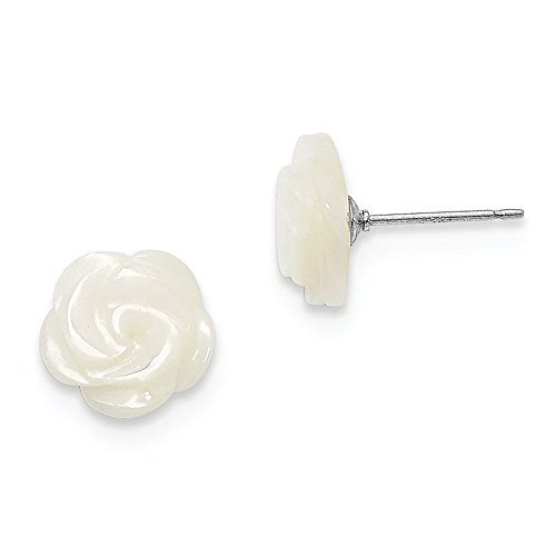Solid 925 Sterling Silver 10mm White Mother of Simulated Pearl Flower Post Stud Earrings