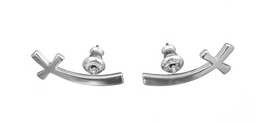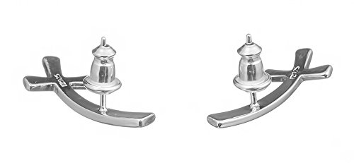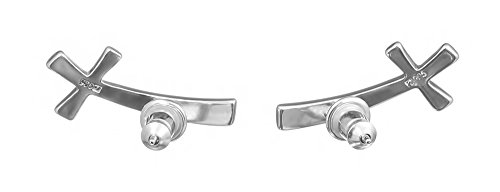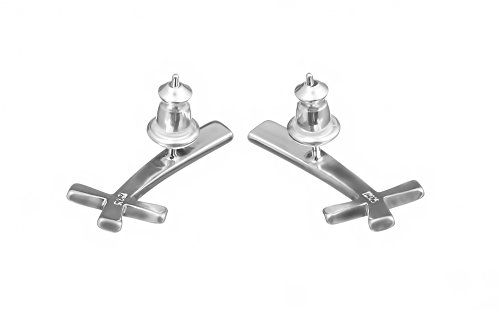 Smooth Sterling Silver 925 cross earring ear climbers that gently curve with Sterling Silver 925 clutches with silicone inserts. The combined weight of both earrings with clutches is 1.6 grams and they measure 19 mm long and 6 mm at the widest point.