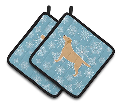 Caroline's Treasures Winter Snowflake Yellow Labrador Retriever Pair of Pot Holders BB3497PTHD, 7.5HX7.5W, Multicolor