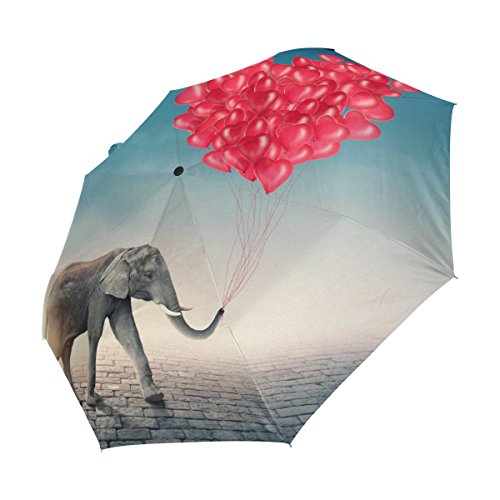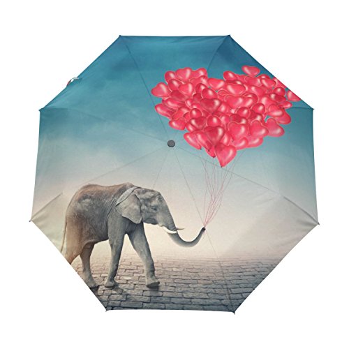 -. Title : WOZO Elephant Red Balloons Valentine 3 Folds Auto Open Close Umbrella