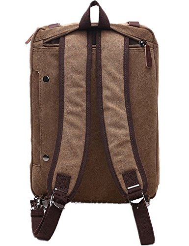-. Feature : Vintage laptop bag,made of waxed canvas and PU leather trim,look elegant and classic,3 ways convertible of this bag,depending on need and carrying preference,more functional & affordable design. / Dimensions:15.3 x 5.4 x 12.3 inch (L*W*H),backpack messenger bag designed with a durable paded protective laptop sleeve,it could fit the laptop up to 15in.This Padded backpack straps for reduced body stress and comfort wear. / Versatile carry option:3-in-1 Multi-Purpose,Transform your multipurpose bag from briefcase/ messenger bag / backpack, depending on need and carrying preference,great briefcase for us to hold laptop and daliy necessities. / Flawless interior:Muti pocket organizer bag have two zippered main compartment, 4 zip front pockets,delicated interior pocket for ipad or tablet,convenient and quick access to what you want,inner divisions and pockets at your disposal,amazing capacity. / Occasion:As daypack perfect for work, school, commutes, travel, trips, and and other day to day activities,which enrich your work,speed up your life.Best gift to your friends,relative,your kids on Special day or daily use.
