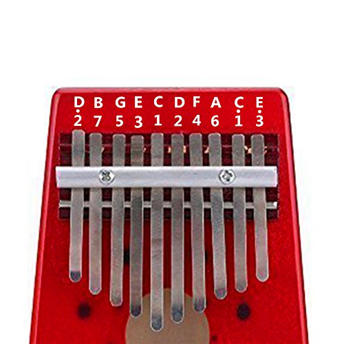 Product Description Material: pine, aluminum bar, aluminum rod Color: red Size: 6.7 x 5.1 x 1.6 inches Sounding bar: 10 pcs in different length Packing way: carton filled with bubble bag Package included: 1 x Thumb piano Packed in carton 0