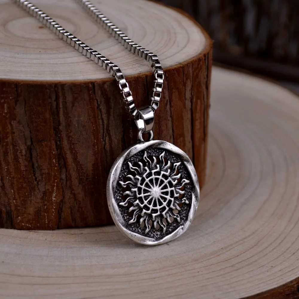 Item:Sun Wheel Black Sun Kolovrat Slavic Amulet pendant