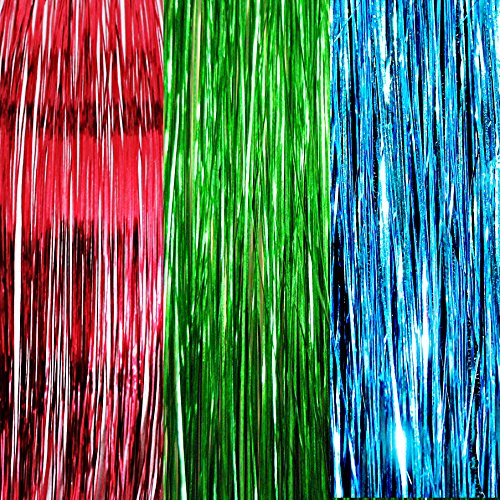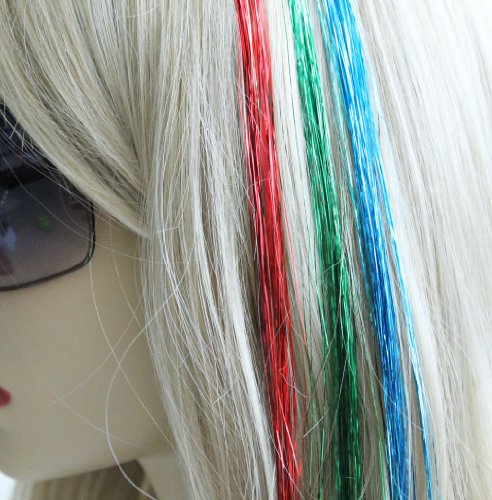 20" Hair Tinsel 300 Strands Three Shiny Colors (Red, Green, Turquoise Blue)