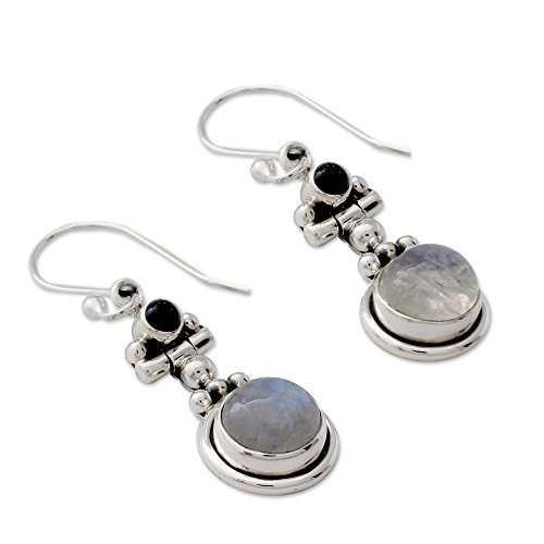 About this item: Cool and serene, mystical rainbow moonstone glows from a sterling sky. Bhavesh presents an original pair of earrings featuring the unique presence of iolite. .925 Sterling silver earrings and hooks. These earrings are made with natural moonstone, which can have inclusions. These are a normal part of the stone and do not indicate a defect. The earrings measure 1.6" by 0.4".