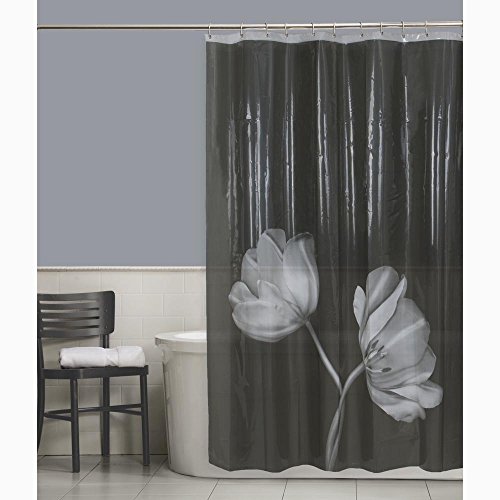Maytex Tulip Photoreal Vinyl PEVA Shower Curtain, Black