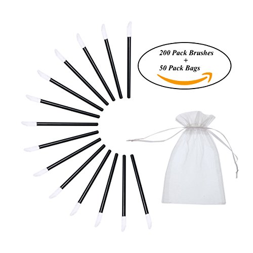 SumDirect Disposable Lip Brushes, Lip Gloss Lipstick Wands ,Make Up Applicators Tool Makeup Beauty Tool Kits,Pack of 200 Brushes with 50Pcs Organza Gift Bags