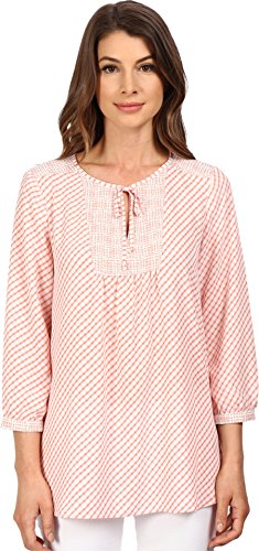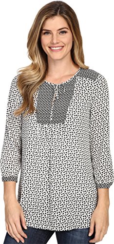 Mixed-print peasant blouse featuring keyhole neckline with tie and three-quarter sleeves with buttoned cuffs Slight shirring at center back High-low hemline with side splits Brand : NYDJ Item model num : S1S0903 MPN(PartNumber) : S1S0903-402 EAN : 0889982057666