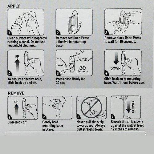 - Reusable plastic hook with Command adhesive strips provides a mounting solution that holds firmly an