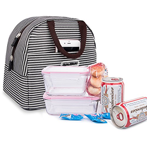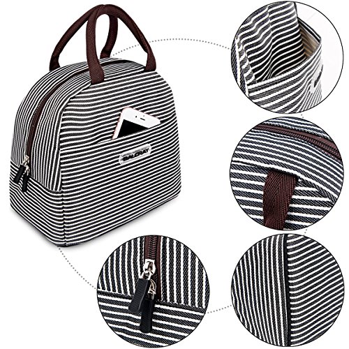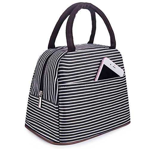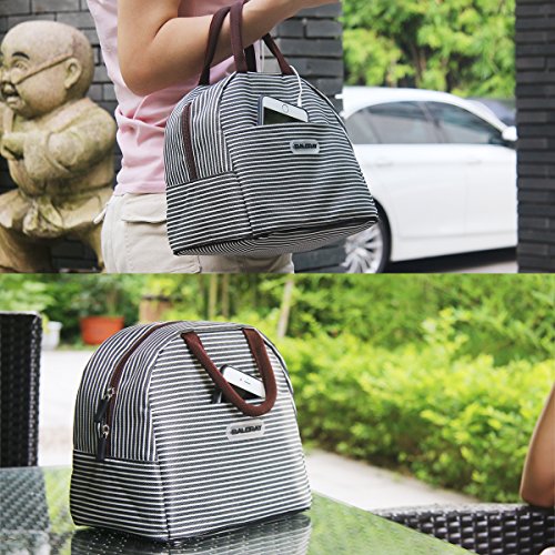 Baloray Lunch Bag Tote Bag Lunch Organizer Lunch Holder Lunch Container (Brown White Stripes)