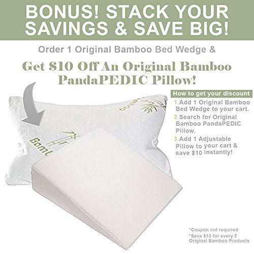 -. Feature : SmartSLANT ENGINEERING: Original Bamboo developed a smarter bed wedge 32" x 30" x7" engineered to provide you with enough room to reach all of your aching pressure points. Our wide design allows your back and shoulders to rest comfortably while naturally elevating your torso. / DOCTOR RECOMMENDED: Original bamboo collaborated with the best Italian doctors while designing our perfect memory foam. Our wedge design was created to help keep your upper body elevated and help you breath better. / ClASSICAL BAMBOO COVER: Our world famous original bamboo cover is hypoallergenic and provides your pillow with a cooling sensation. Easily adjust the zipper, remove, & wash to keep your wedge pillow fresh & clean! / NATURAL REMEDY: Have you ever had heartburn or acid reflux? Our bed wedge could help. Our wedge design naturally elevates your upper body, which simultaneously helps reduce acid reflux. Our comfortable design can be used for neck, back, and leg pains. / 100% SATISFACTION GUARANTEE! If you aren't completely satisfied with your italian bed wedge pillow, simply return it within the for 30 days for a full refund! Our unique design can be used to create your perfect sleeping position or help reduce acid reflux and heartburn!