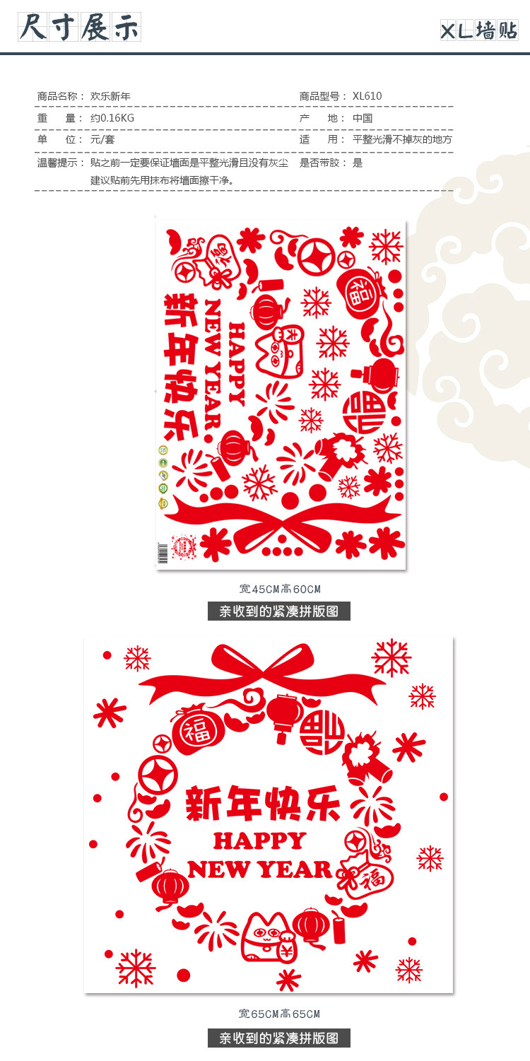 元旦春节贴画店铺商场门橱窗贴花玻璃贴纸过新年装饰品喜庆墙贴纸