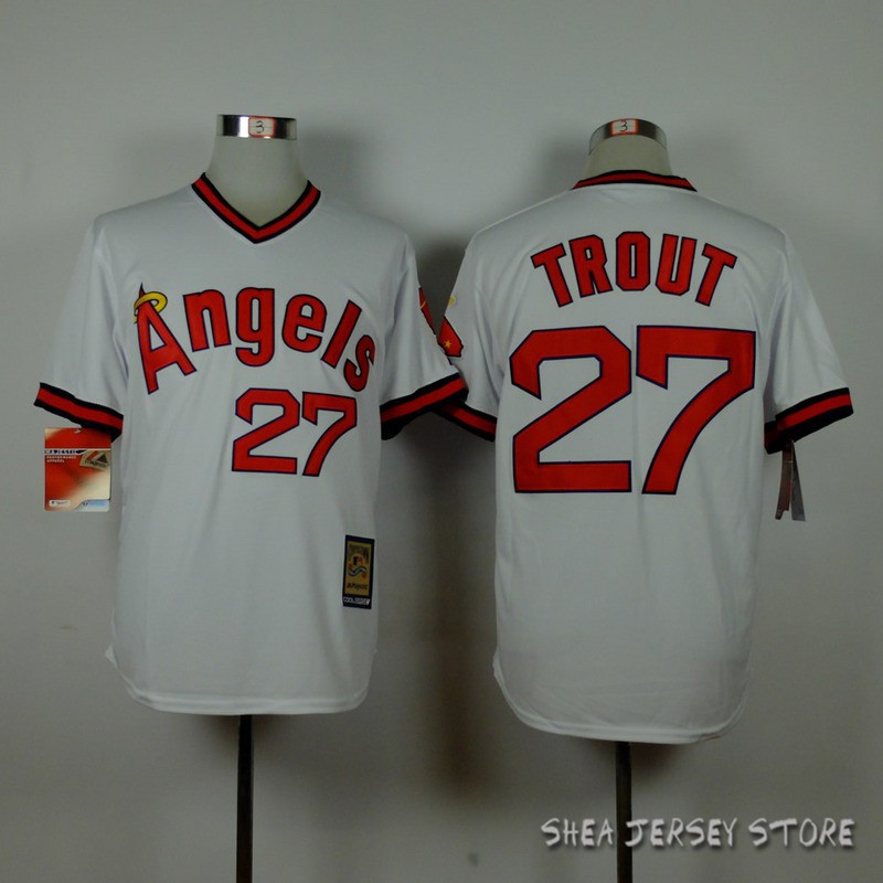Los Angeles Angels of Anaheim Mike Trout Jersey,27 Sports Jerseys White Grey 1980 1965 throwback Baseball Jersey Free shipping