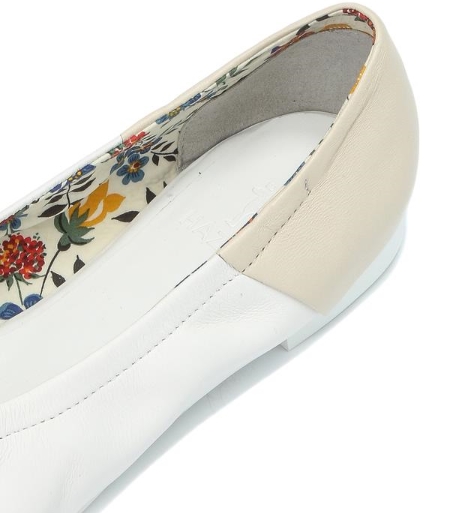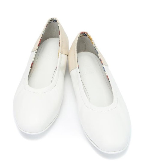 투톤 배색 디자인으로 세련된 외관을 보여주며 발등 부분에 밴딩을 적용하여 탈착이 간편한 플랫 슈즈입니다