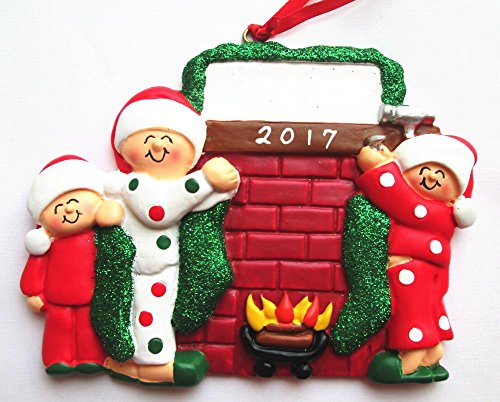 2017 Family Christmas Ornament Family Hanging Stocking on Fireplace (Family of 3 DIY)