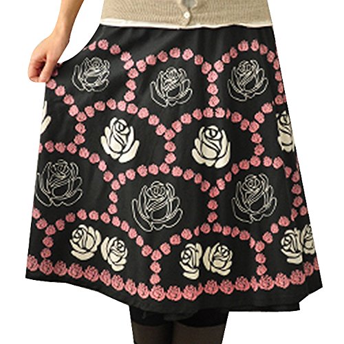 -. Title : スカート ひざ丈 巻きスカート 薔薇 ラップスカート インド綿 ブラック フリーサイズ