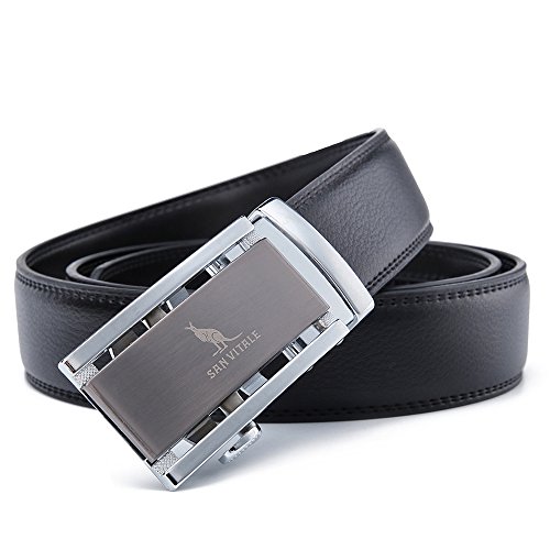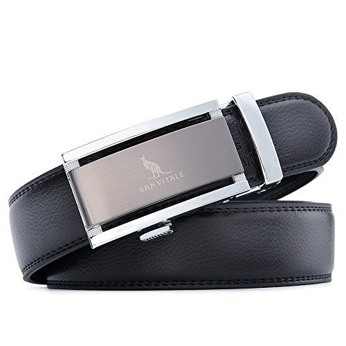 -. Binding : Apparel -. Brand : SAN VITLAE -. Department : mens -. Feature : SIZE ADJUSTABLE - Trim to fit. If the belt is too long for you, you can trim the strap length to fit your size. / SIMPLE FASHION - Automatic Buckle Cowskin Split Leather Belt for Men. Simple style suitable for business and leisure. / MATERIAL - Belt buckle: Zinc alloy. Belt body: Cowskin Split Leather / Genuine Leather, semicircle end. / EASY TO USE - Belt buckle and belt body removable and interchangeable.SAN VITALE Logo printed/marked on the buckle and belt. / GIFT BOX - Make a big impression! Enclosed in a lovely,beautiful box with handbag. -. PackageQuantity : 1 -. ProductGroup : Apparel -. ProductTypeName : ACCESSORY -. Title : SAN VITALE Men's Solid Buckle with Automatic Ratchet Leather Belt 35mm Wide 1 3/8"