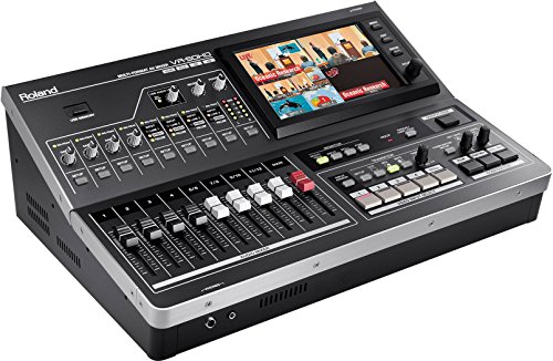 A complete portable HD studio in a single unit. Single-person operation of sound and picture using faders, buttons and touch screen. The Roland VR-50HD all-in-one AV mixer beautifully integrates an audio mixer, video switcher, multi-viewer touch screen and USB video/audio streaming into a stand-alone device. This single unit delivers functionality that until now required a number of peripheral devices to accomplish. This portable live HD production solution is ideal for schools, churches, council meetings, corporate events, sports, trainings, or any other live event.Feature