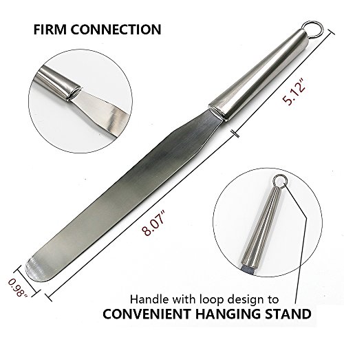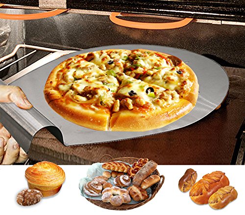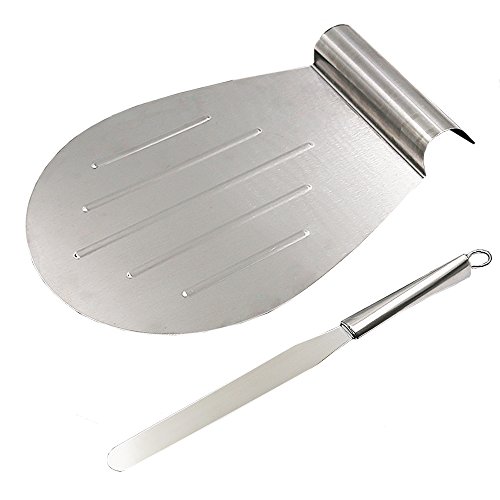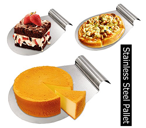 1. The pizza cake slide is super easy to transfer pizzas, cakes, pies, breads or other desserts safely. Moving cake layers as well. Very handy and useful baking tools! 2. The true decorator's spatula helps creating a smooth surface when you're icing larger cakes 3. The whole cake/pizza Peel and offset spatula are made of thick food grade 430 stainless steel, it won't rust, sturdy, safe and health 4. The all-purpose pizza lifter set are also a good gift for families, friends or colleagues. If you are looking for a gift for someone that loves to bake. This is the best choice! 0
