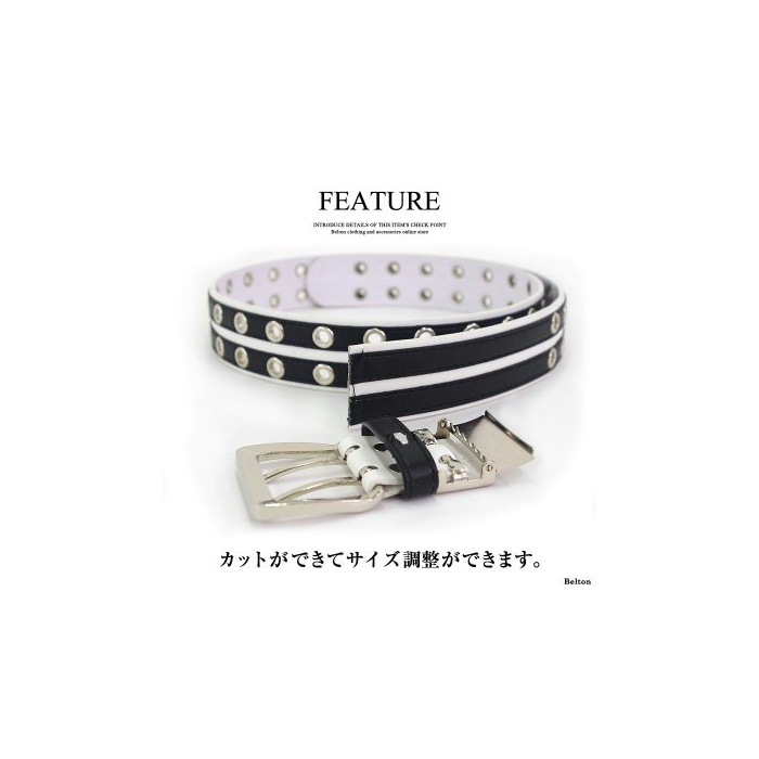 원본상품명: 【ベルト門店のBelton】バイカラの連Wピンベルト メンズ レディス 合成皮革 チェアフル ブラック