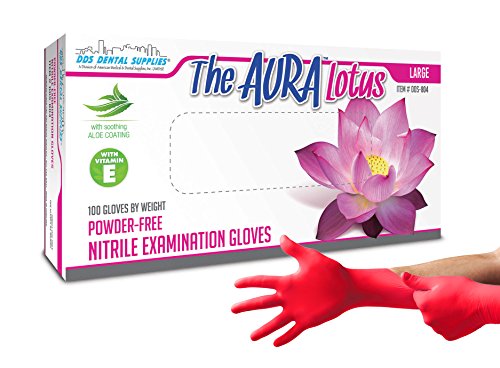 Aura DDS-804 Lotus P.F Premium Flex Exam Gloves with Aloe & Vitamin E -100/Bx, Large, Nitrile, Cherry Rose Color