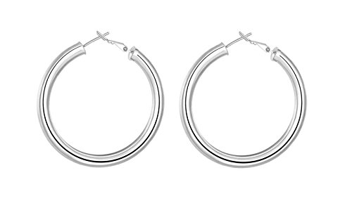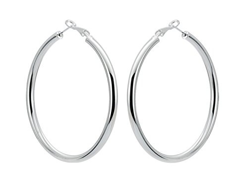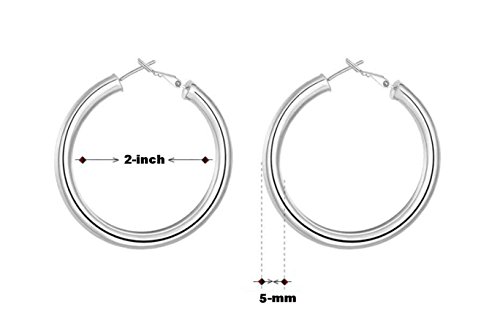 In the package: 925 Sterling Silver Fashion High-profile Hoop Earrings with Omega Backs, thick 5mm tube 50mm / 2-inch round (LARGE) X 1 pair, Clear Rubber Bullet Clutch Earring Safety Backs x 2 Pairs, neatly packed in STAYJOY factory sealed box, perfect as gift!