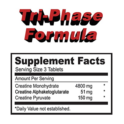 The Tri-Phase Formula, All 3 Critical Creatine Molecules - Creatine Monohydrate 4800mg - Rapidly pre-load energy production. Cellular function support and rapid post-workout recovery