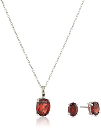 Solitaire oval gemstone set featuring pendant necklace and stud earrings featuring genuine garnet gemstone