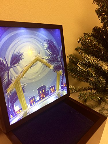 A touching portrayal of that most holy night, this stunning nativity set features a backdrop that lights up with LED bulbs. Prepare to be filled with the wonder of the Nativity story, remembering the reason we celebrate each December, as you listen to this deluxe music box play “Silent Night.” Pieces are displayed and stored in a beautiful wooden box. An uplifting gift of faith, give this breathtaking Christmas present as a best friend gift, grandma gift, teacher gift or to any member of your family. Each piece is carefully crafted from cold-cast resin and skillfully painted by hand. Includes 4 AA batteries. Approximately 3.25H x 6W inches.Feature