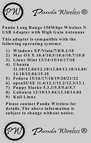 Panda Long Range 150Mbps Wireless N USB Adapter w/ High Gain Antennas - Windows XP/Vista/7/8/8.1/10, Mac OS X, Mint, Ubuntu, Fedora, openSUSE, Lubuntu, Puppy and Kali Linux