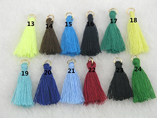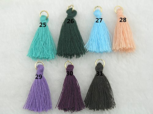 100pcs 32 Colors Silky Handmade Tiny(1.4'') Soft Tassels, Mini Tassels, Colorful Tassels, Earring Tassels with Golden Jump Rings