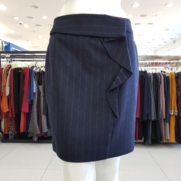 세로줄 스트라이프무늬 물결프릴 포인트 모직 스커트-CA7W0-WQS030-660