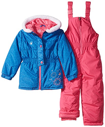 Snowsuit has full-zip bib and adjustable shoulder straps with quick-release buckles