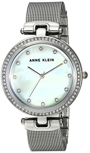 Anne Klein Women's AK/2973MPSV Swarovski Crystal Accented Silver-Tone Mesh Bracelet Watch