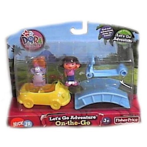 -. Binding : Toy -. Brand : Fisher-Price -. EAN : 0027084275766 -. Feature : Includes two figures each and several accessory pieces to go on a Dora adventure / Each set can be a complement to the existing Let's Go Adventure playsets / On-The-Go Playset -. IsAdultProduct : 0 -. Label : Fisher-Price -. LegalDisclaimer : Must be 18 years of age or older to purchase! -. Manufacturer : Fisher-Price -. Model : H9101 -. MPN : H9101 -. PackageQuantity : 1 -. PartNumber : H9101 -. ProductGroup : Toy -. ProductTypeName : TOYS_AND_GAMES -. Publisher : Fisher-Price -. ReleaseDate : 2006-06-12 -. Studio : Fisher-Price -. Title : Dora the Explorer Let's Go Adventure On-The-Go Playset -. UPC : 027084275766 -. Warranty : N