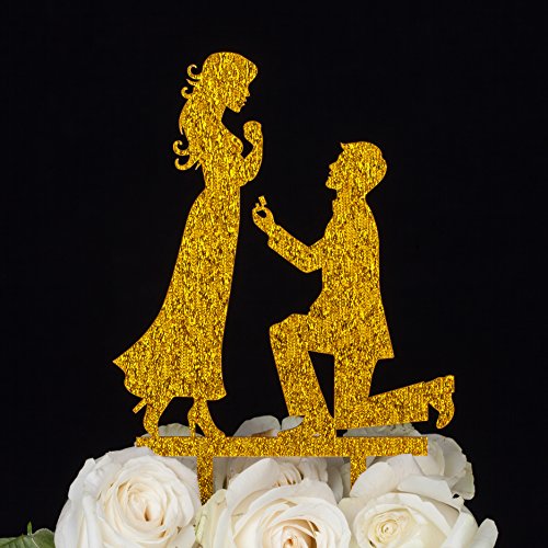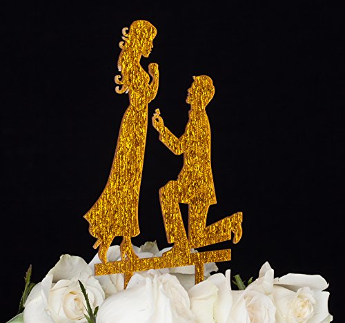 LOVENJOY with Gift Box Marry Me Proposal Silhouette Wedding Cake Topper (5-inch, Gold Glitter)