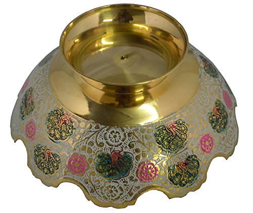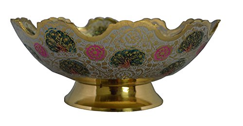 Zap Impex Golden Plated Brass Decorative Dry Fruit Bowl carving Work Size- 5 Inch Beautiful Peacock design Kitchenware Gift