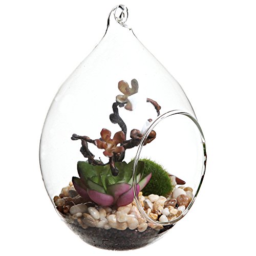 Bring a taste of natural-looking beauty to your home decor with this artificial succulent vase. Made of clear glass, this vase boasts a unique spherical design that includes a glass hanging loop at the top and a round access point on the side. Inside, you'll find a tiny garden of artificial succulent plants that will give any space the perfect dash of greenery. With this maintenance-free artificial succulent plant vase sitting on any table or hanging from any ceiling, you'll have an eye-catching decorative accent that is sure to earn compliments from you guests.**Official MyGift® product.**