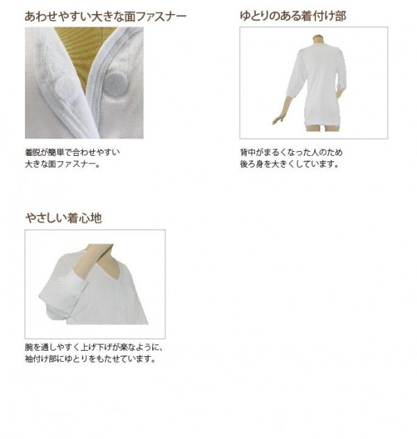 fk094igrjs吸収性に優れ、肌触りのよい綿素材を用いた厚手の肌着です面ファスナータイプなので着脱が簡単に行えます サイズ 個装サイズ:30×20×5cm 重量 個装重量:250g 素材・材質 綿100% 仕様 紳士用(七分袖) 製造国 日本 合わせやすい大きな面ファスナーで着脱簡単 ■お洗濯時の注意 ・面ファスナーの両面を合わせてから洗ってください ・弱アルカリ性洗剤で洗い、その後十分にすすいでください ・漂白剤は適量を水またはぬるま湯によく溶かしてからお使いください 吸収性に優れ、肌触りのよい綿素材を用いた厚手の肌着です面ファスナータイプなので着脱が簡単に行えます