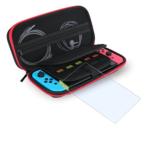 -. Title : ohCome Hard Travel Carrying Case for Nintendo Switch with [1Pack] Anti-scratch Tempered Glass Screen Protector, Protective Storage Bag with 20 Game Cartridge / Micro SD Card Holders (Black-red)