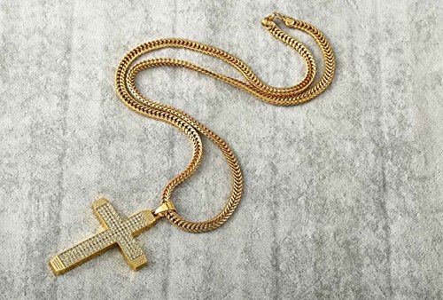 -. Feature : Material: Stainless steel,18k gold plated. Metal type: 18K Gold plated, a method of depositing a thin layer of 18k gold onto surface of necklace. / Cross Pendant:1.96"(L) 2.75(W), Chain Length: 26" / No Allergic, Highly Resistant to Rust and Corrosio,bling bling crystal / It can be used as a perfect gift for yourself or send it to your love one when Christmas,birthday,party,anniversary,have a good luck