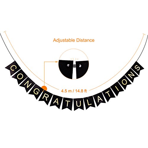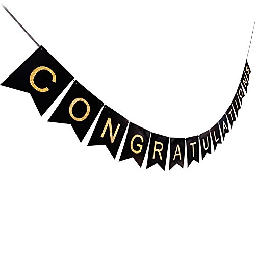 - This banner with shimmering gold letters is perfect for a birthday party, graduations, new job, engagement, wedding, baby shower, job promotion or a good report, retirement, promotions, team parties, awards etc. This congratulations banner is perfect decoration to add a touch of classy decor and welcome your guests to your party.