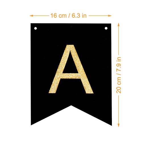 - Shimmering gold letters are printed on high quality glossy cardstock and laced together with a beautiful black ribbon. Our banner is sturdy but not heavy and reusable so would be great to have on hand when you need to host a party.