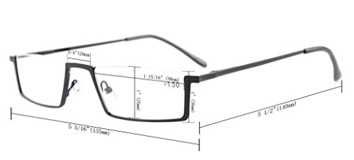 -. Feature : PRODUCTS DIMENSION-Frame material: Metal, Lens width: 1 15/16" (50mm), Frame width: 5 5/16"(135mm), Lens height: 1" (25mm), Frame height: 1" (26mm), Bridge (DBL): 3/4"(20mm), Temple length: 5 1/2"(140mm),Spring hinge: Yes,Lenses: Aspheric, Head size:Narrow to Medium. / EYEKEPPER HALF RIM COMPUTER EYEGLASSES- Obliterate Blue Light with our patented computer glasses that will keep your eyes safe from all harmful blue light, designed for anyone using an electronic device such as computers, T.V.'s or phones.This meets the requirements of the U.S. FDA, and exceeds European Union requirements / EYEKEPPER COMPUTER GMAING READING GLASSES-included a microfiber cloth and hard zipper case, Superior Blue Light Blocking Computer Glasses that will reduce eye strain when working on a computer, tablet, phone or television.Excellent for Relieving Visual Discomfort and fatigue associated with using a computer for long periods of time,spring-loaded hinges,Rx-able Glasses Frame / QUALITY SPRING HINGES FRAME -FDA Registered Gamer Glasses and Computer Eyewear,Accord with ANSI Z80.3-2010,Accord with BS EN ISO 12312-1:2013 and EN14139:2010,Accord with AS/NZS 1067:2009,Quality frame,lenses and have spring-loaded hinges, No Longer spend nights lying awake after using a Computer for long periods of time / LIFETIME BREAKAGE WARRANTY&30 DAY MONEY BACK GUARANTEE: In case any broken problem happens, contact the seller of Eyekepper without hesitation to solve the problem until satisfaction. Eyekepper provides lifetime after sale service for all Eyekepper computer readers glasses. Customers can return and get refunded for any reason. You have no risk to try