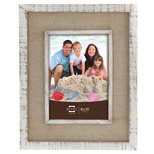 -. Title : P.R.Inz Shore Side Distressed White Frame with Beige Linen Border, 8 by 10-Inch