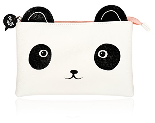 - Makeup bag features black and white panda on a neutral background