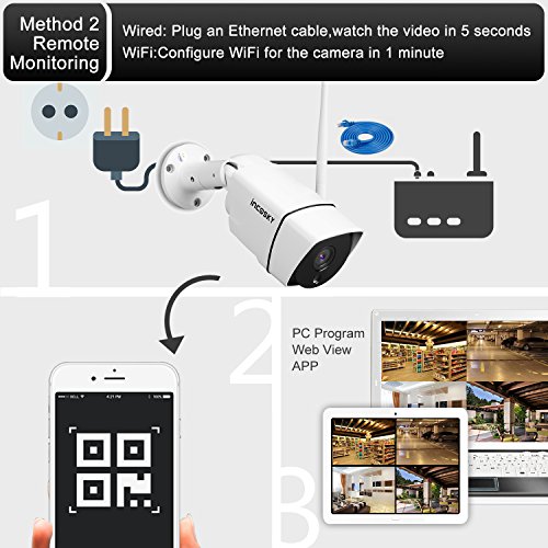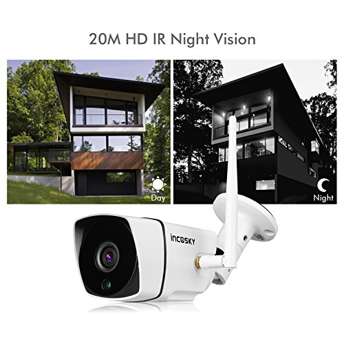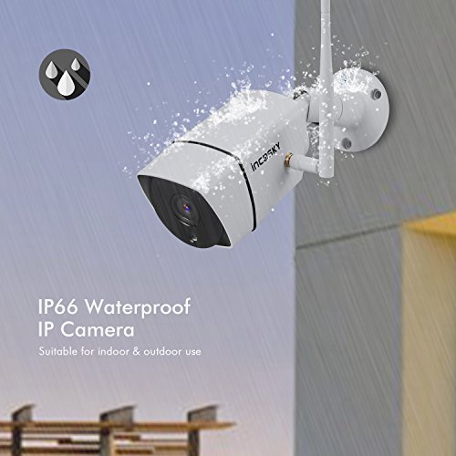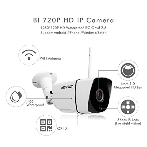 Security Camera incoSKY 720P Wireless WiFi Bullet IP Camera, IR Night Vision, Waterproof, Motion Detection Alarm for Home Surveillance System, Windows, iOS, Android Supported, BI2