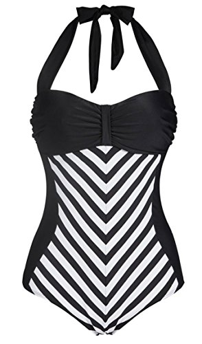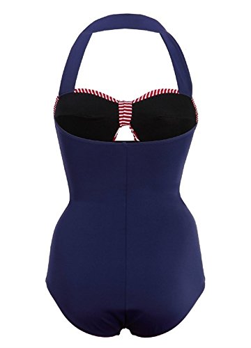 Tailloday 50s Retro Vintage Blue One Piece Red Stripe Swimwear Swimsuits XXXL